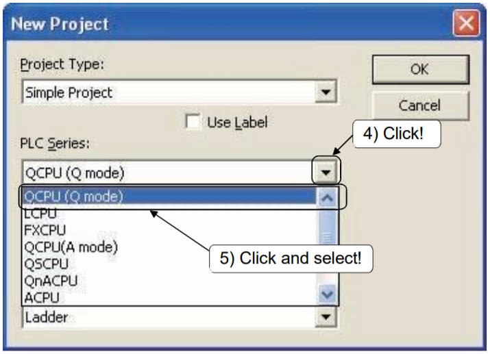 Dưới đây là một ví dụ cho một dự án đơn giản của QCPU (Q mode)).