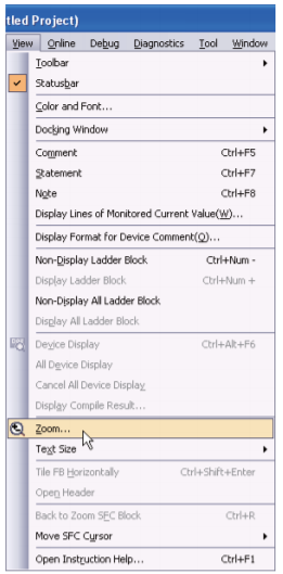 Thanh menu được sử dụng khá thường xuyên khi làm việc với GX Works2. Click vào thanh menu để chọn những chức năng khác nhau từ thanh menu.
