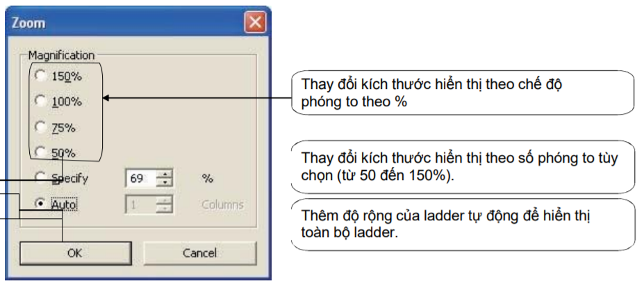 Màn hình cài đặt Display Format cho biểu đồ ladder hiện ra