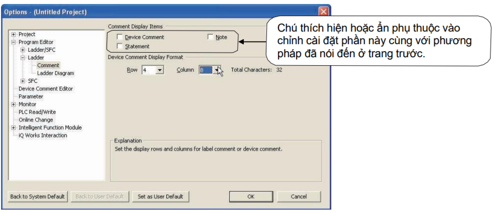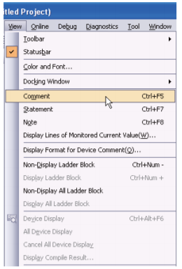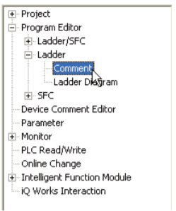 [Tool] → [Option] → “Program Editor” → “Ladder” → “Comment”
