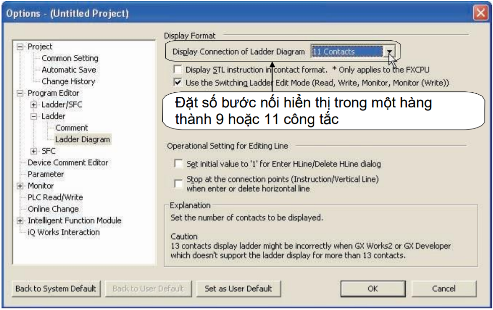 Bạn Click “Program Editor” → “Ladder” → “Ladder Diagram” trong màn hình Option
