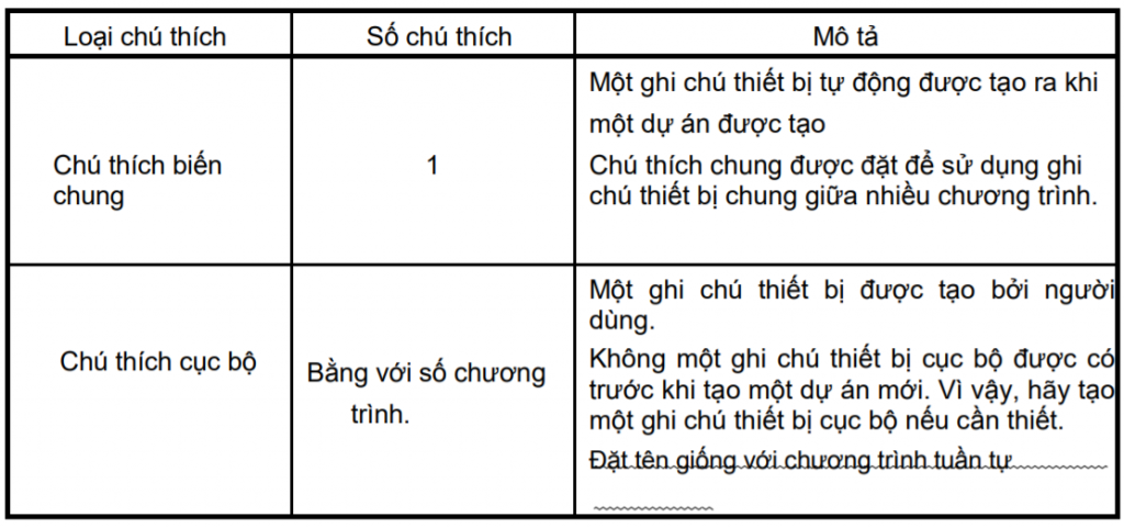 Chú thích nhãn và chú thích thiết bị được sử dụng sẽ cho chú thích trên màn hình tương ứng.