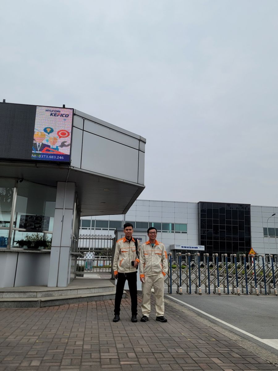 Kỹ sư An Phát chụp ảnh tại cổng ra/vào công ty