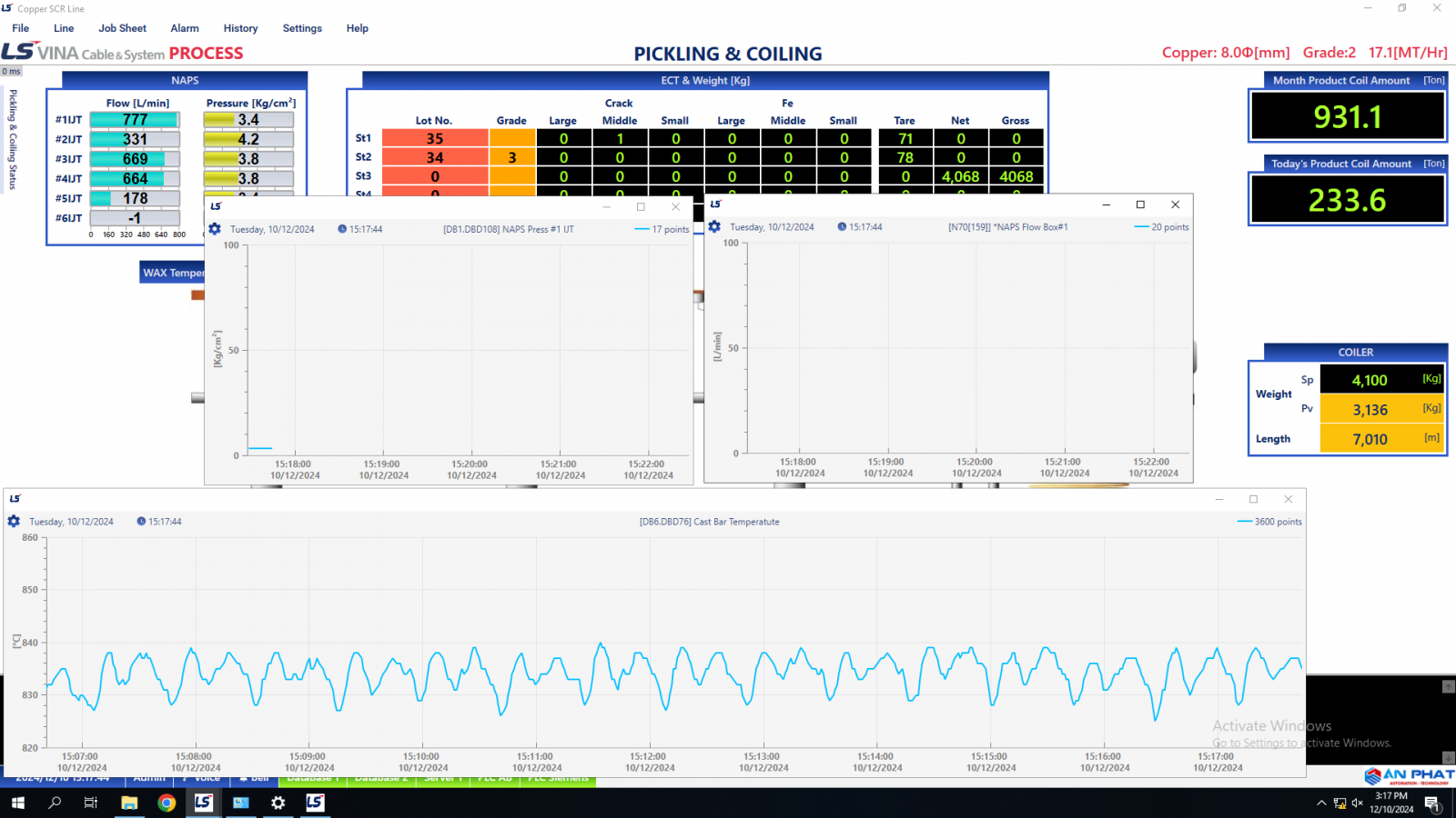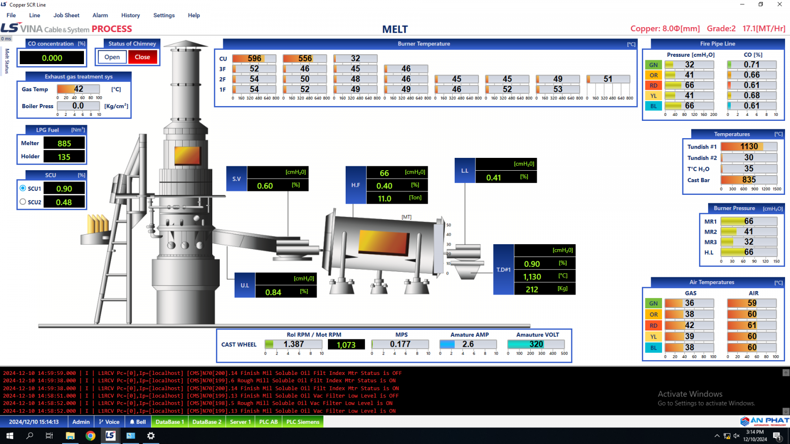Hình 5. Giao diện giám sát bộ phần Lò nấu chảy đồng của dây chuyền