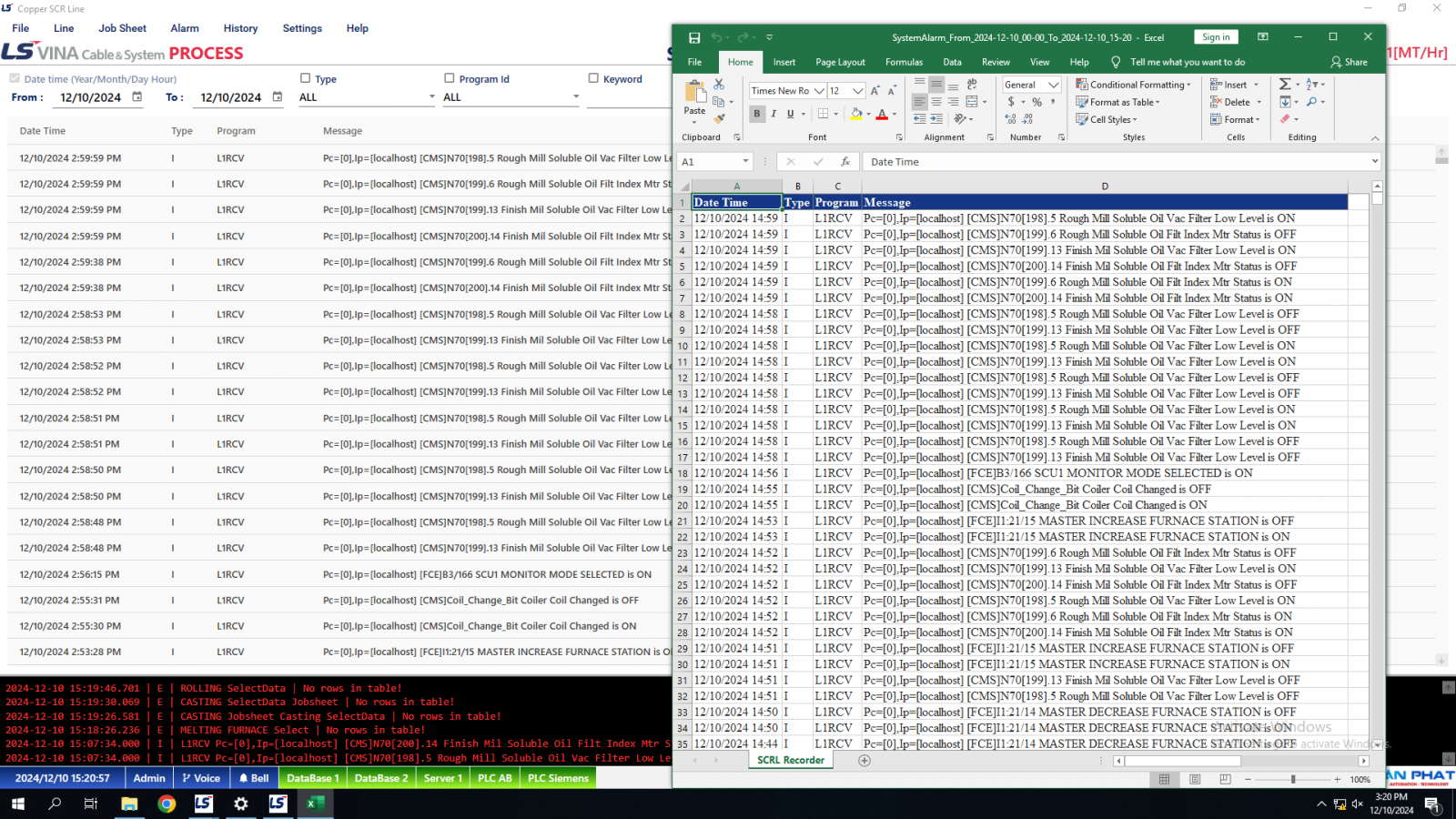 Hình 14. Tab hiển thị và xuất Excel các Alarm