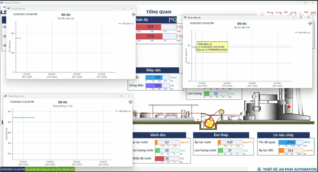 + Giám sát tổng quan toàn bộ dây chuyền đúc nhôm.