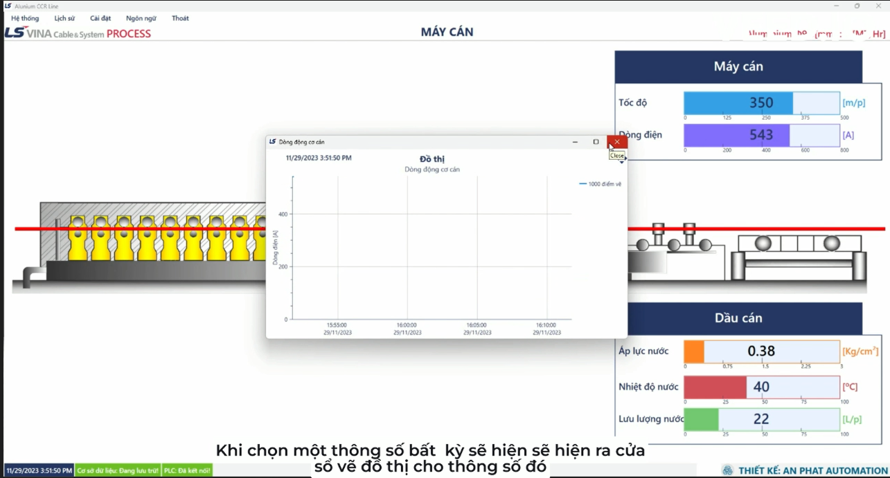 + Hệ thống hiển thị online các thông số của dây chuyền dưới dạng số và đồ thị.