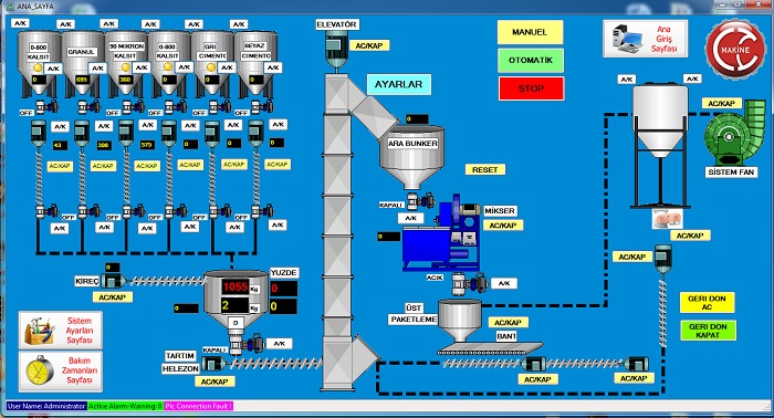 + Giám sát tại nhà máy (Tại nhà vận hành):Nhà quản lý sẽ theo dõi các thông số, tình trạng thiết bị và toàn bộ hoạt động của dây truyền sản xuất theo yêu cầu qua giao diện máy tính được kết nối trực tiếp với phòng điều khiển qua đó có thể nắm được tình hình sản xuất, tình trạng vật tư thiết bị, lên kế hoạch sản xuất ,truyền tải,…