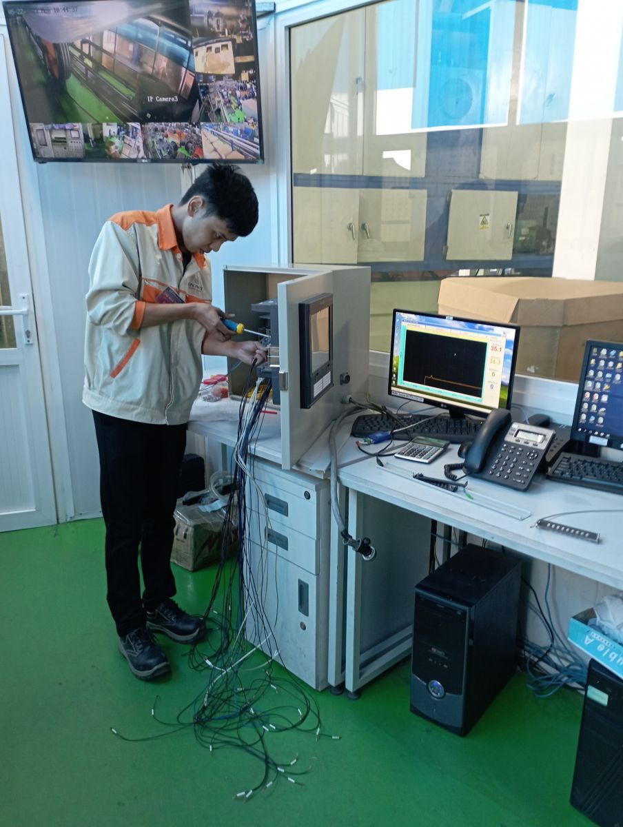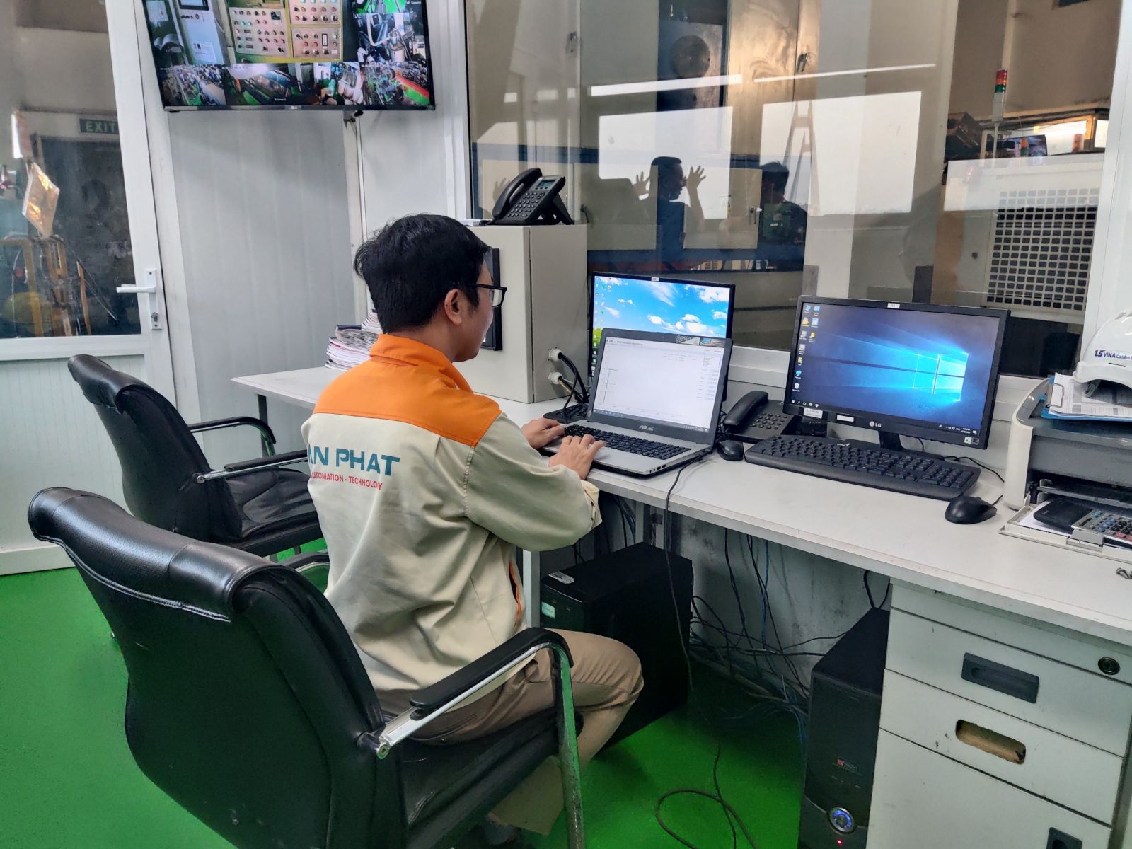 Kỹ sư An Phát hiệu chỉnh hệ thống giám sát tại phòng điều hành