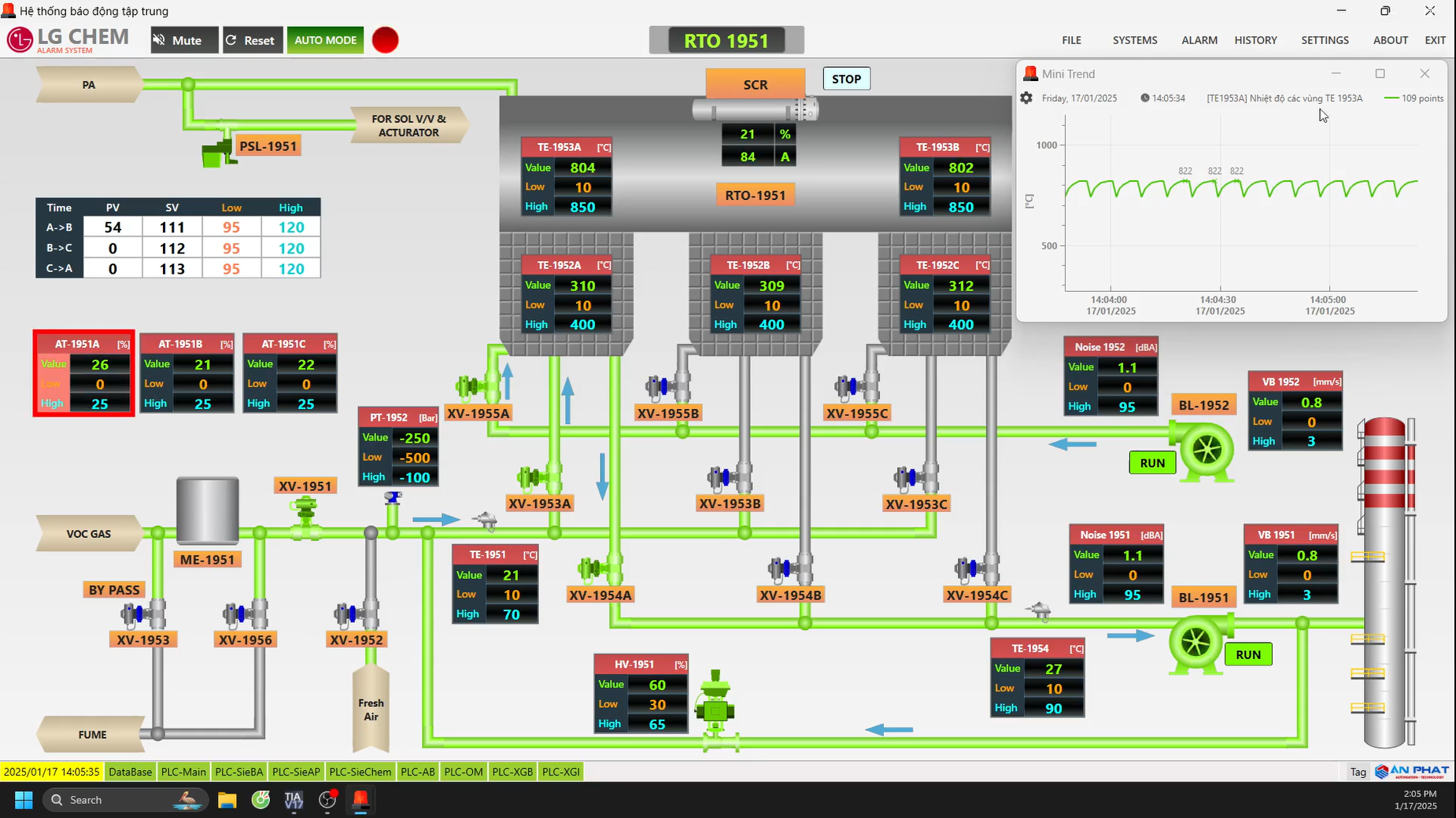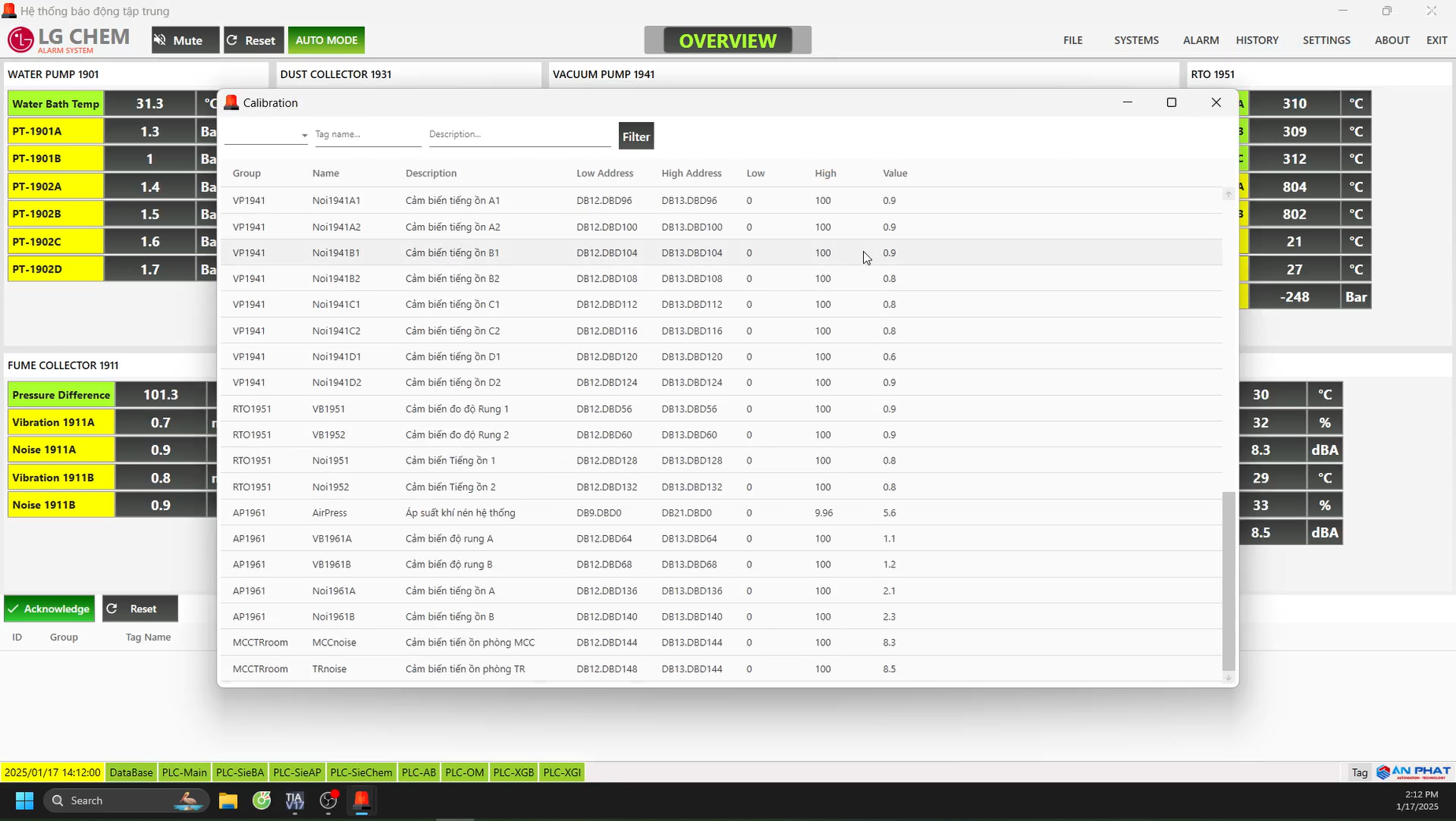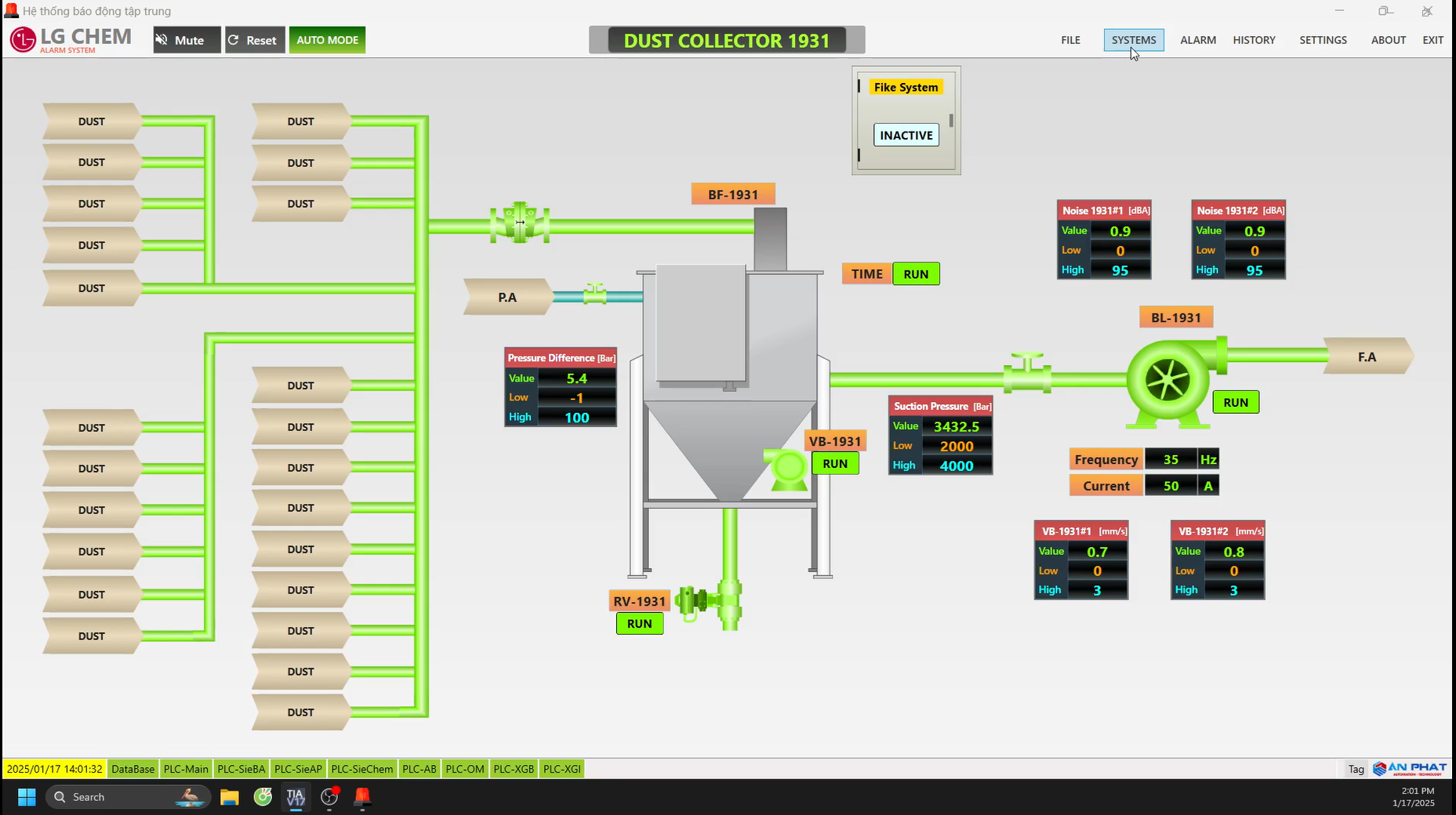 Giám sát thông số khu vực máy hút bụi, hút khói.