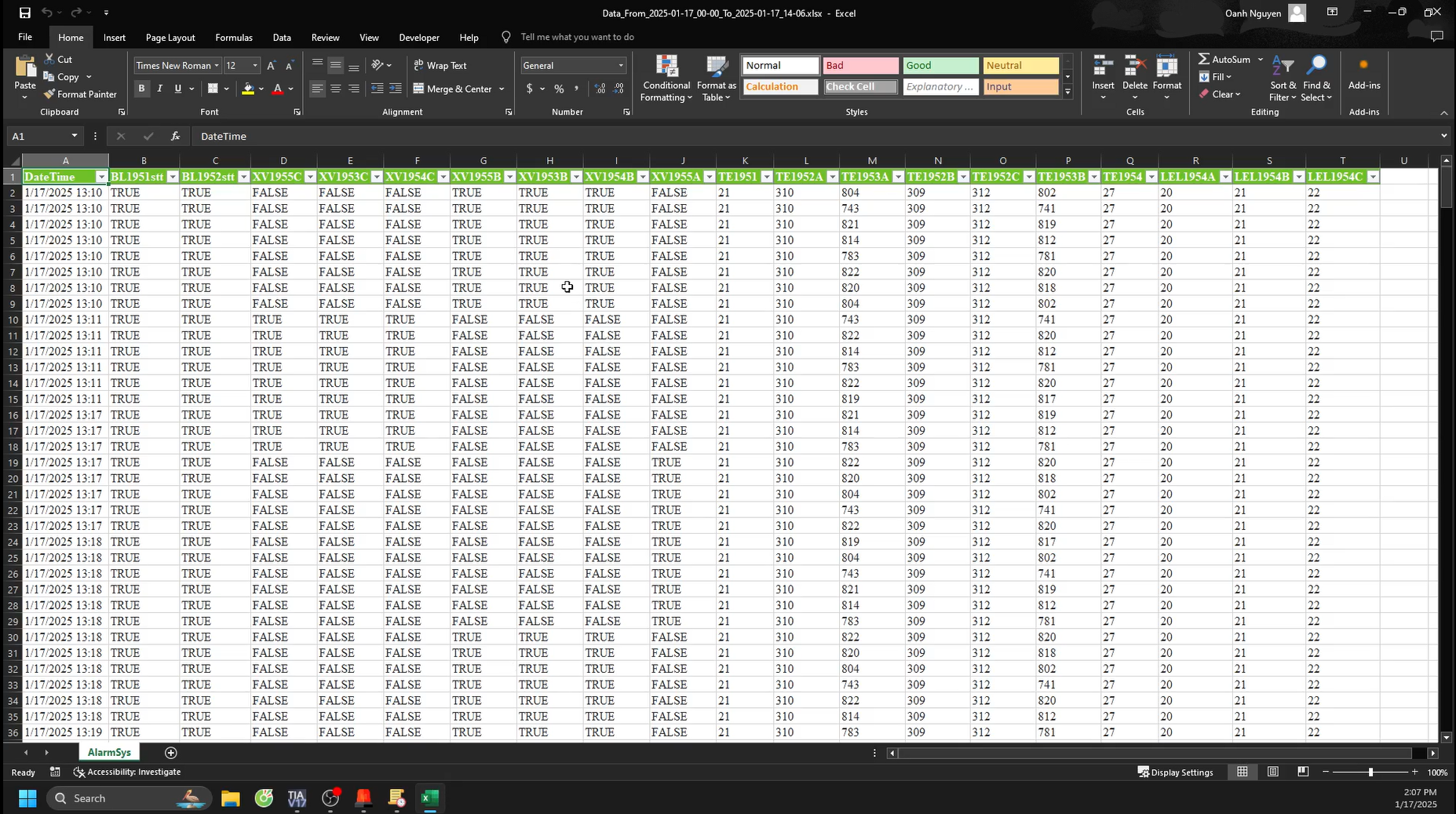 Hệ thống ALARM, lịch sử các thông số.