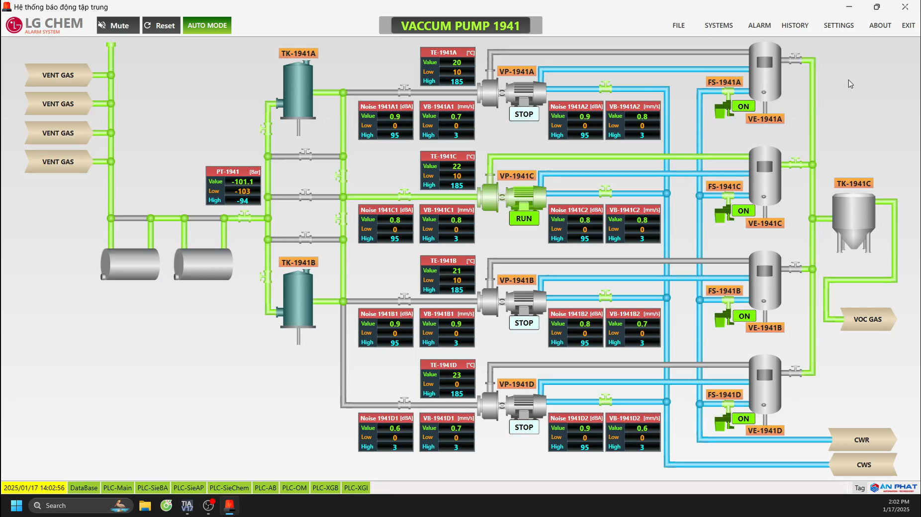 Giám sát thông số khu vực bơm chân không.