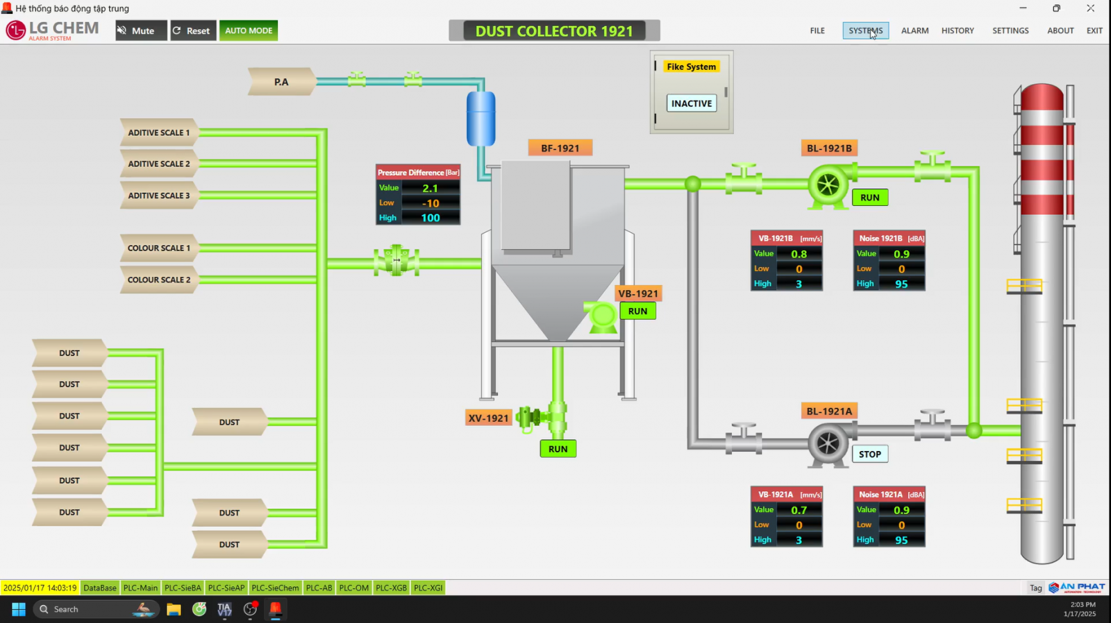 Hình 6. Giao diện giám sát khu vực hút bụi DC 1921