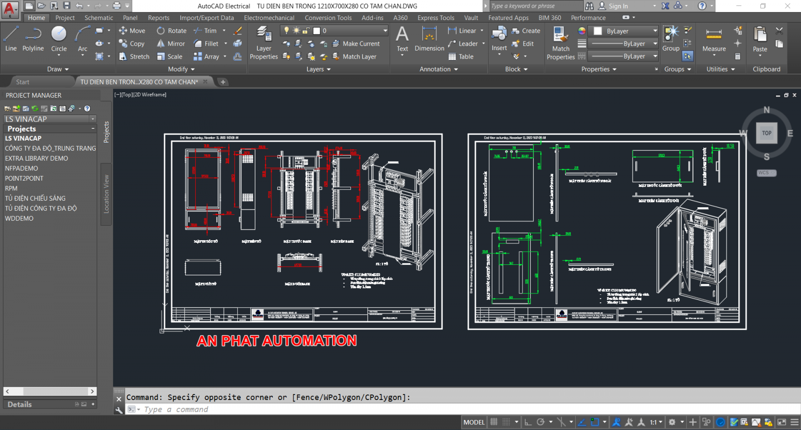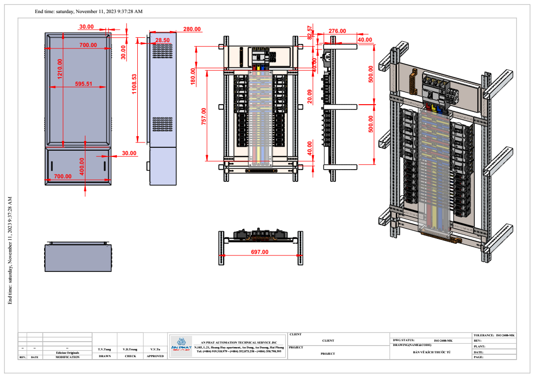Hình 1. Sơ đồ tủ điện được thiết kế trên CAD